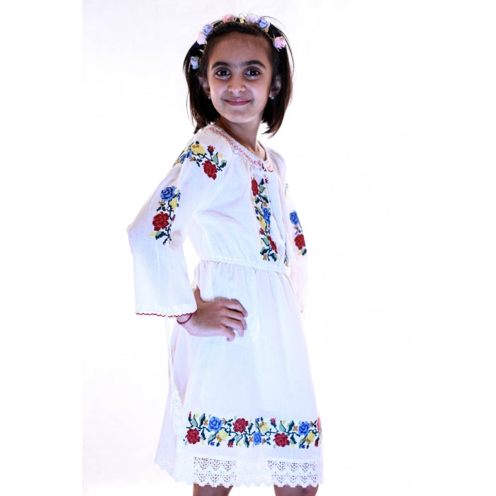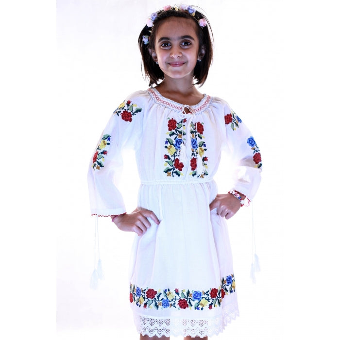Rochita romaneasca pentru copii cu model traditional brodat la masina.