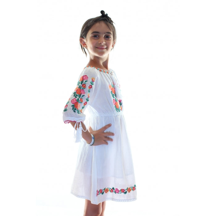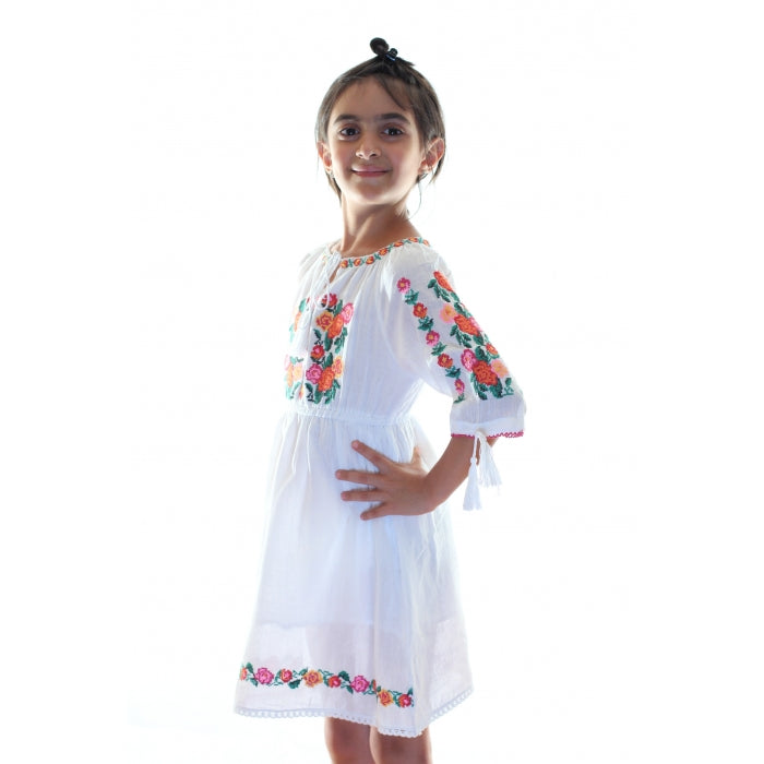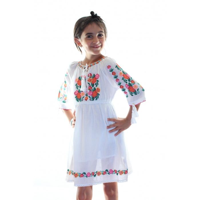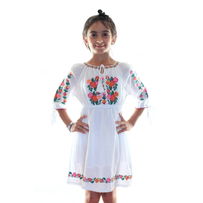 Rochita romaneasca pentru copii cu model traditional brodat la masina.