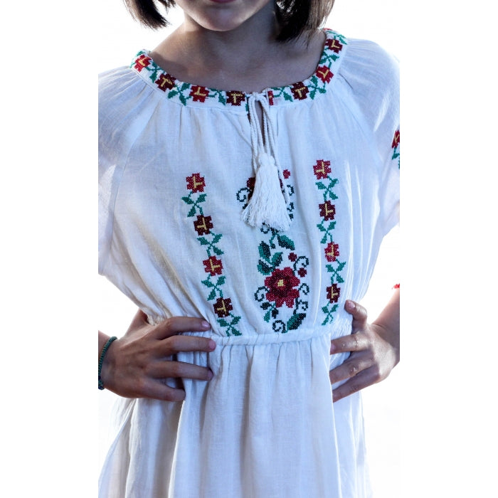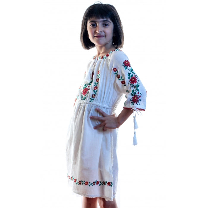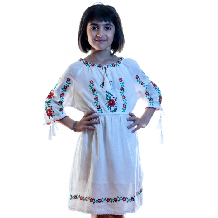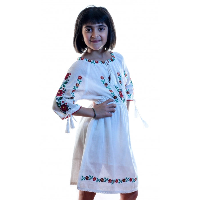 Rochita romaneasca pentru copii cu model traditional brodat la masina.