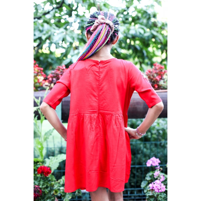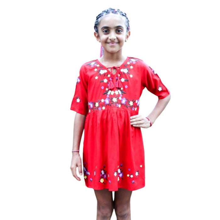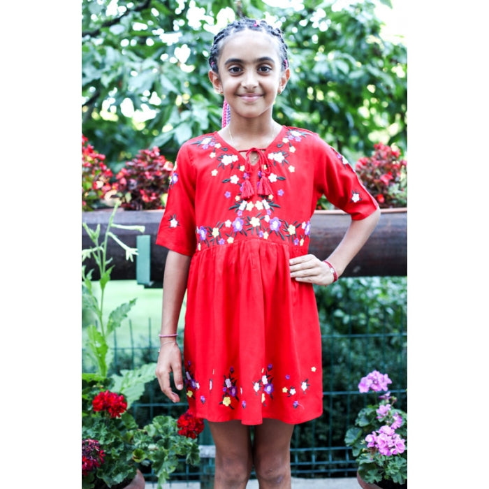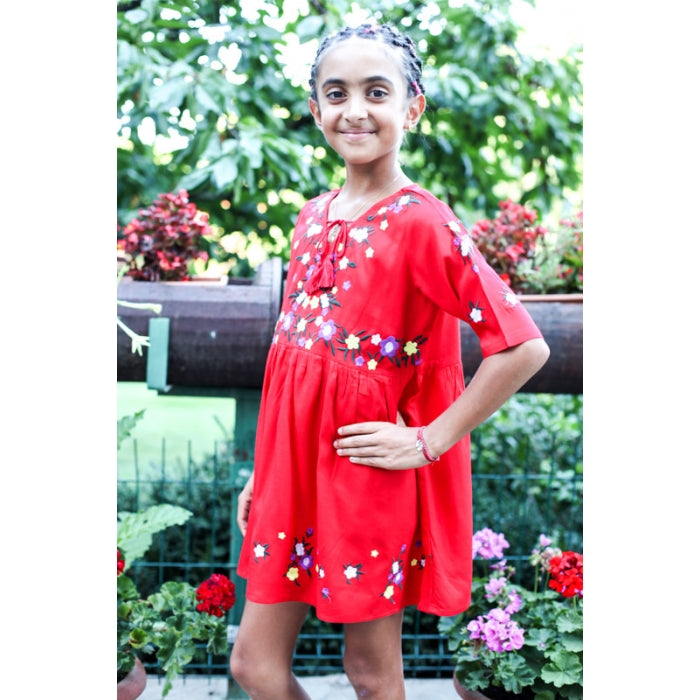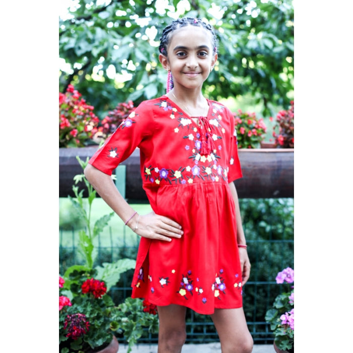 Rochita romaneasca pentru copii cu model traditional brodat la masina.