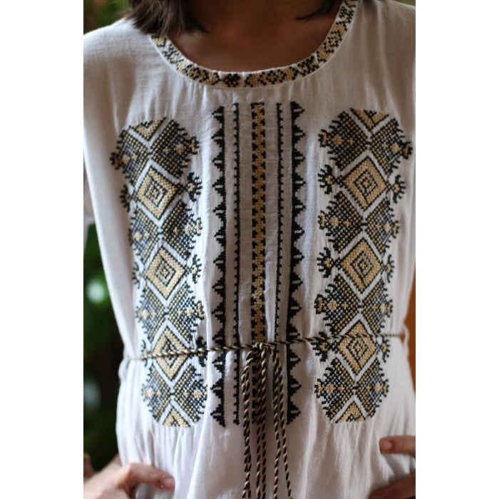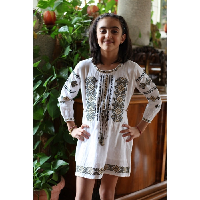 Rochita romaneasca pentru copii cu model traditional brodat la masina.
