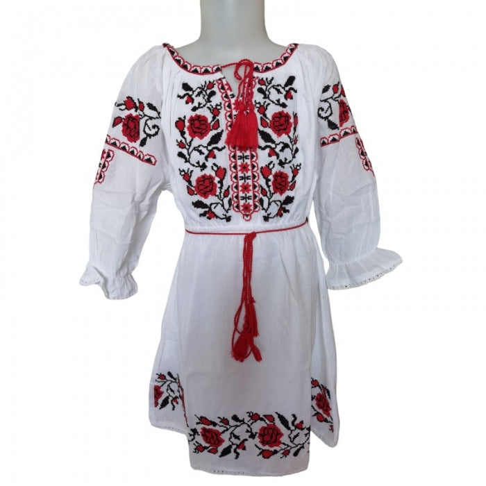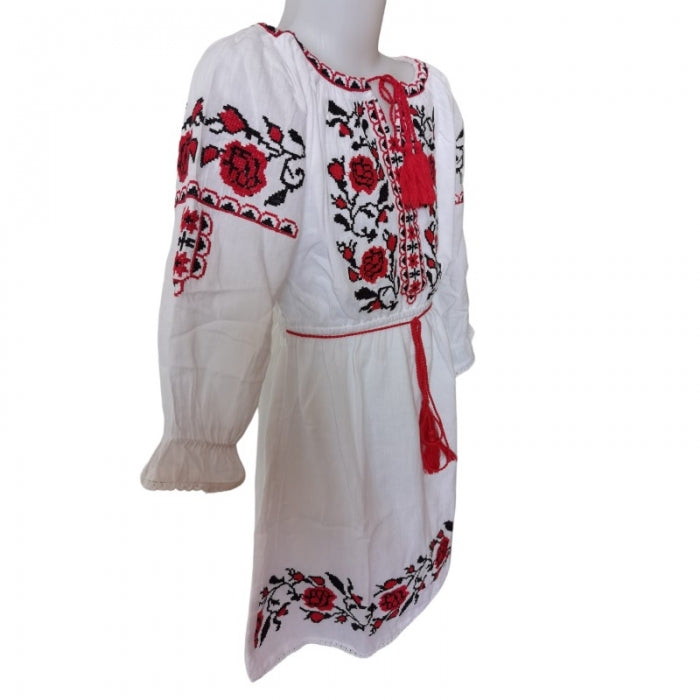 Rochita romaneasca pentru copii cu model traditional brodat la masina.
