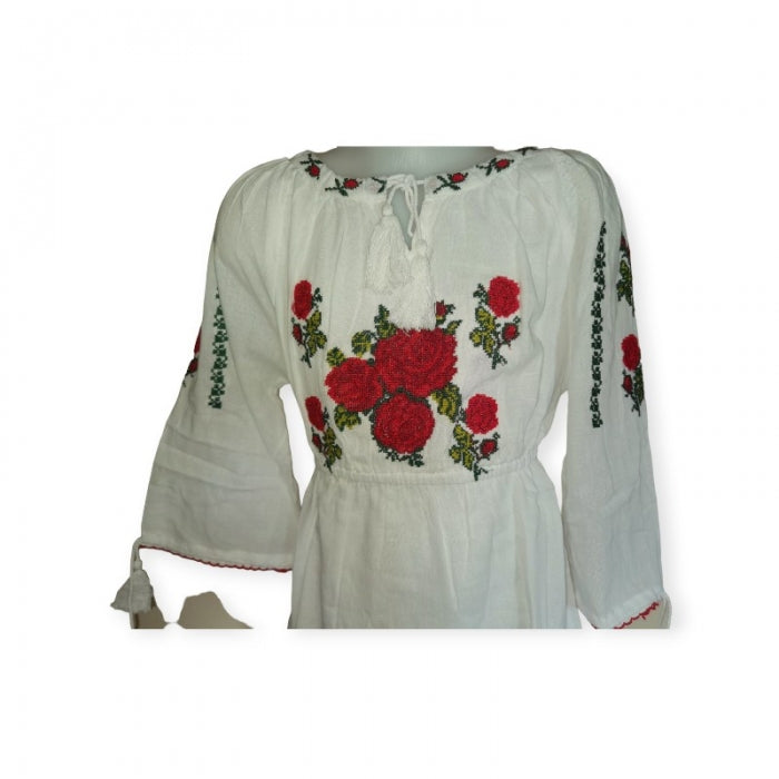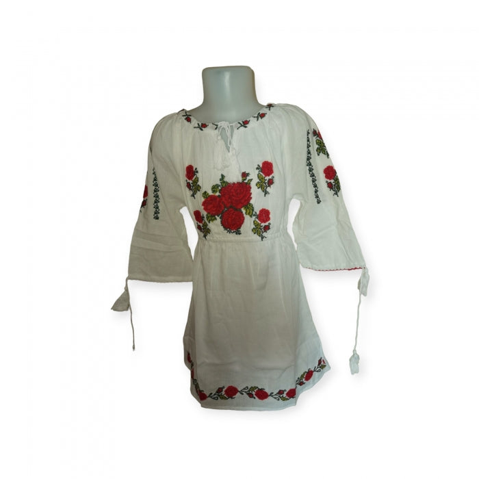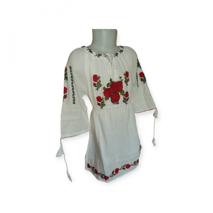 Rochita romaneasca pentru copii cu model traditional brodat la masina.