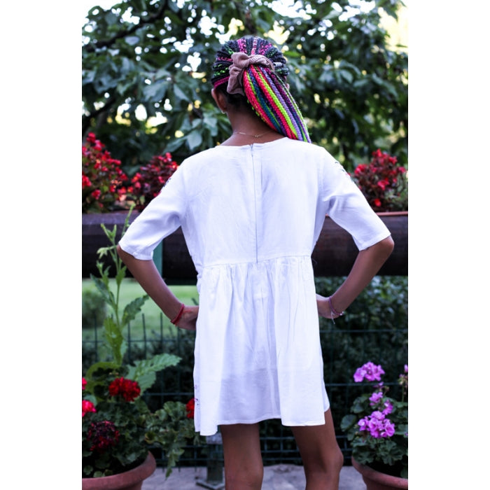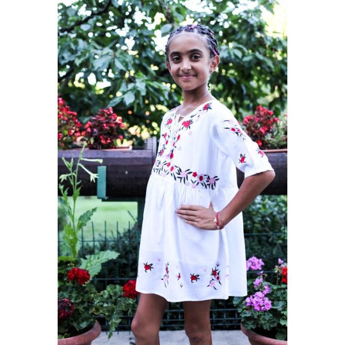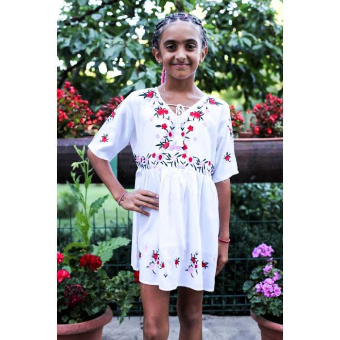 Rochita romaneasca pentru copii cu model traditional brodat la masina.