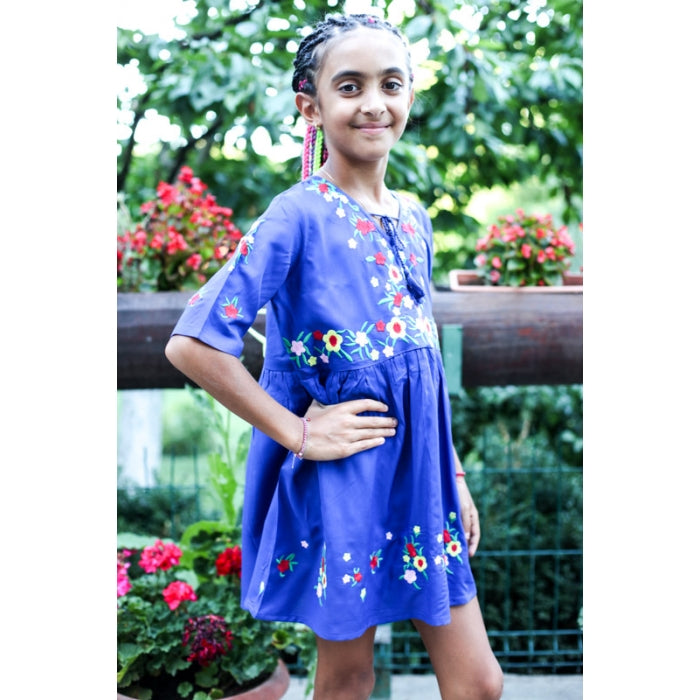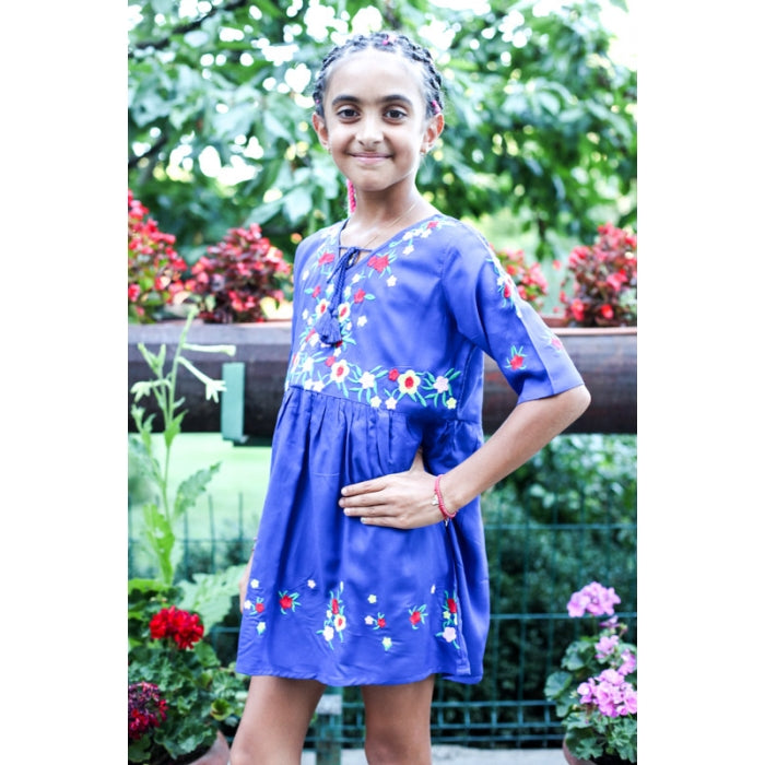 Rochita romaneasca pentru copii cu model traditional brodat la masina.