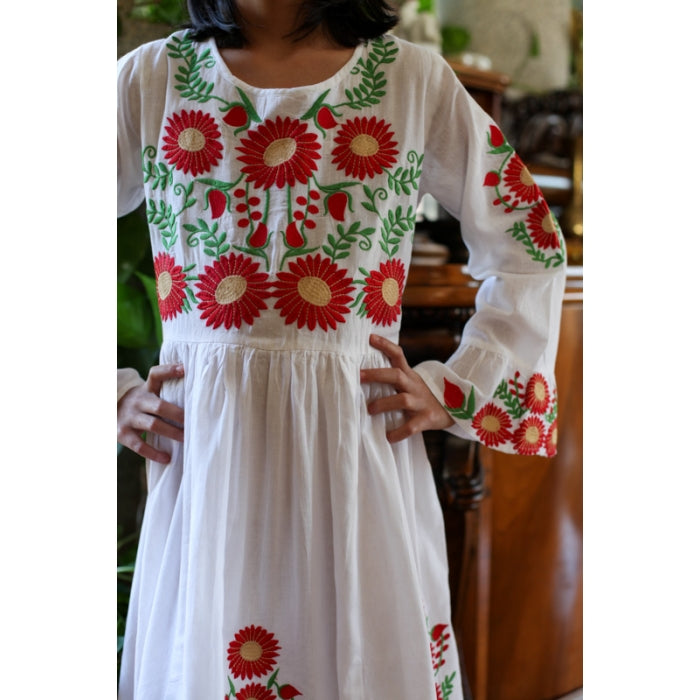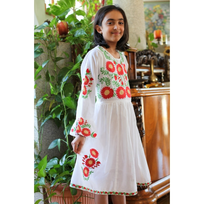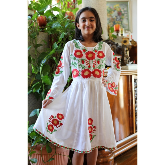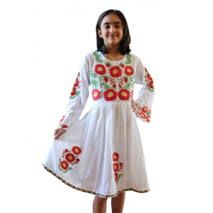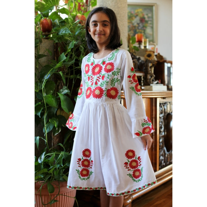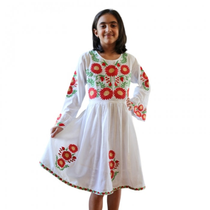 Rochita romaneasca pentru copii cu model traditional brodat la masina.