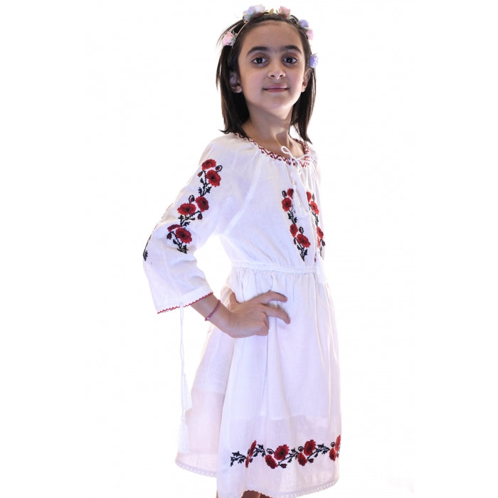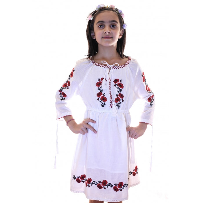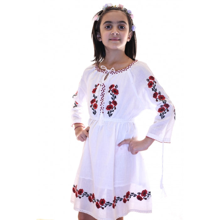 Rochita romaneasca pentru copii cu model traditional brodat la masina.