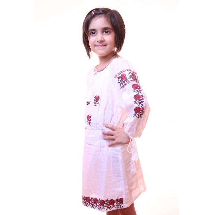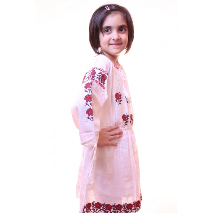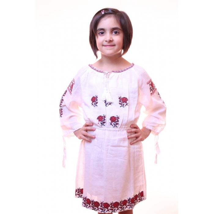 Rochita romaneasca pentru copii cu model traditional brodat la masina.