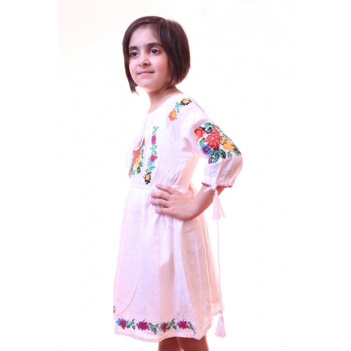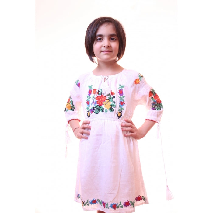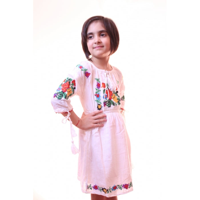 Rochita romaneasca pentru copii cu model traditional brodat la masina.