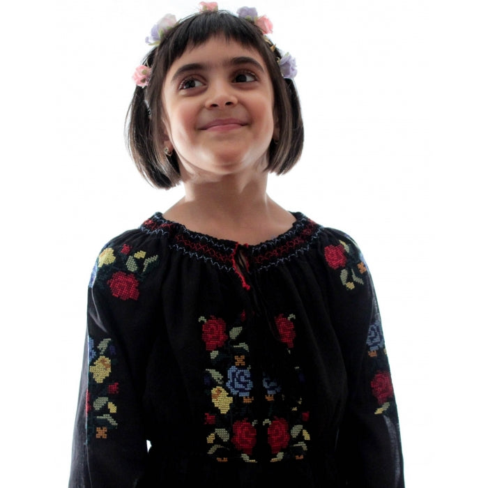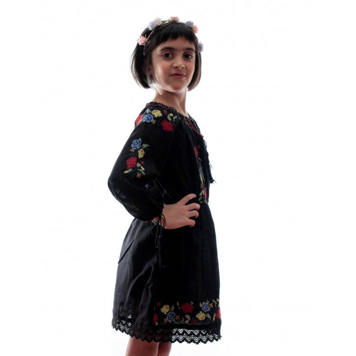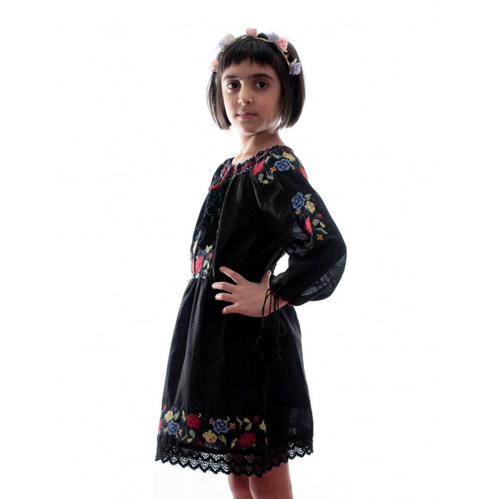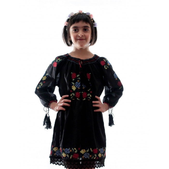 Rochita romaneasca pentru copii cu model traditional brodat la masina.