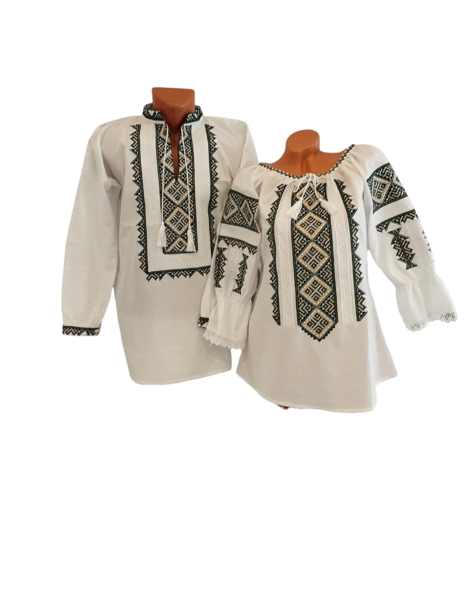 Setul pentru familie, destinat bărbaților și femeilor, combină eleganța broderiei verzi cu accente aurii pe materiale din bumbac de calitate. Disponibil în mărimi de la S până la 3XL, acest set asigură confort și un aspect rafinat pentru toate siluetele, fiind ideal pentru ocazii speciale sau purtarea zilnică cu stil. Materialul natural oferă respirabilitate și durabilitate, iar designul brodat adaugă un plus de rafinament tradițional reinterpretat modern.