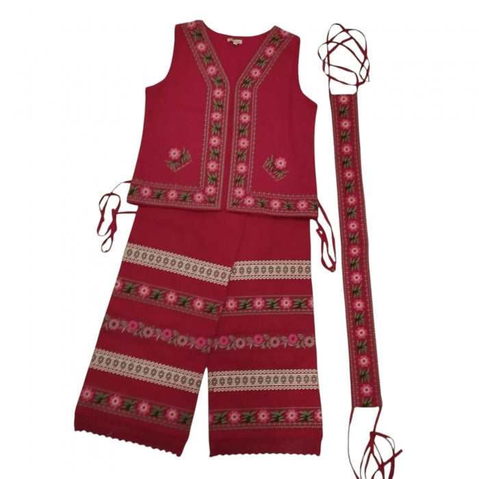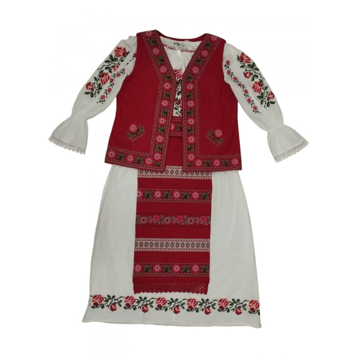 Descoperă frumusețea și autenticitatea costumului popular românesc cu acest set tradițional dama care include o vestă si un set format din 2 fote. Fiecare piesă este realizată cu atenție la detalii și cu un design elegant, perfect pentru orice ocazie specială sau sărbătoare.