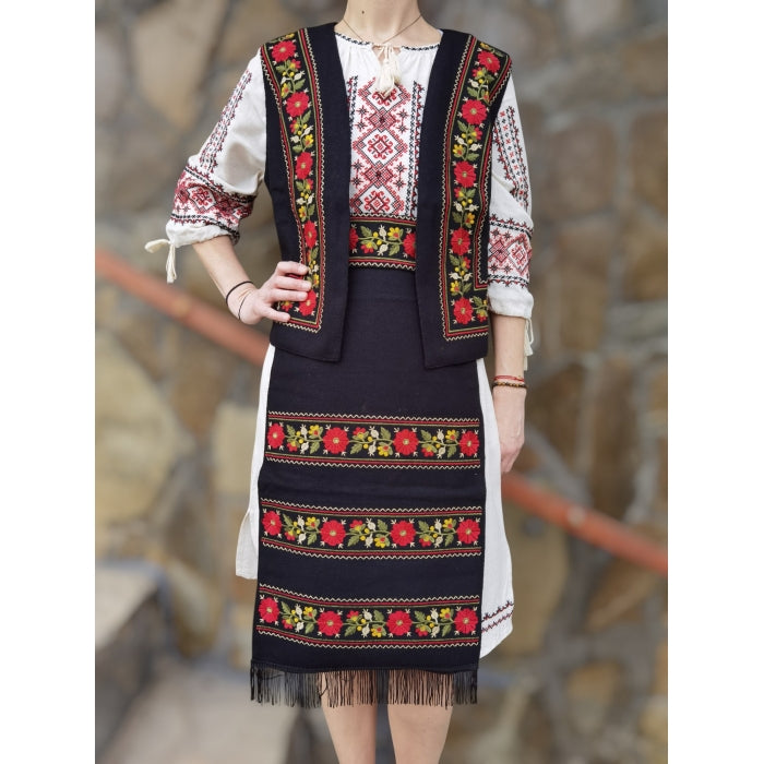 Descoperă frumusețea și autenticitatea costumului popular românesc cu acest set tradițional dama care include o vestă si un set format din 2 fote. Fiecare piesă este realizată cu atenție la detalii și cu un design elegant, perfect pentru orice ocazie specială sau sărbătoare.