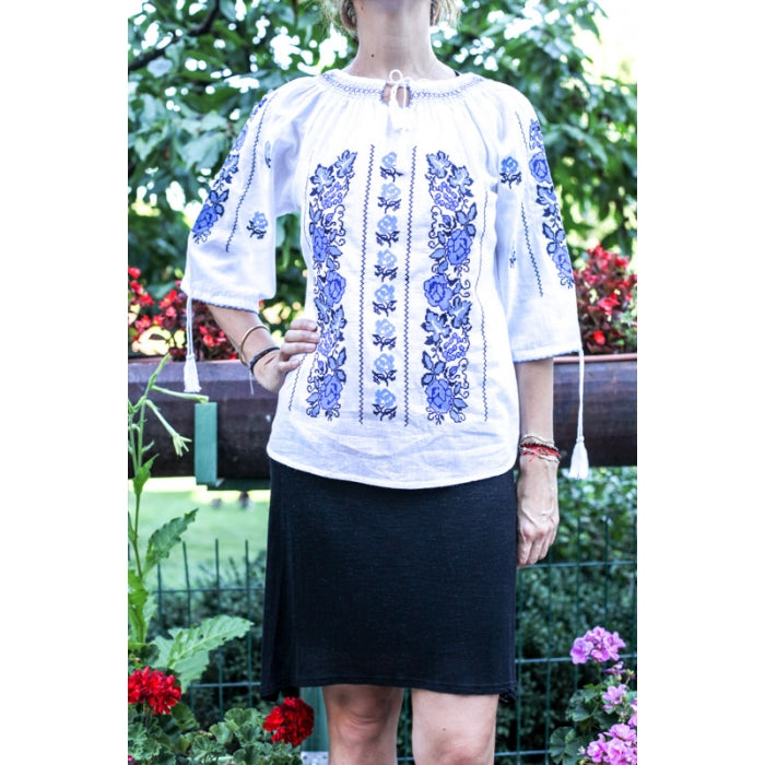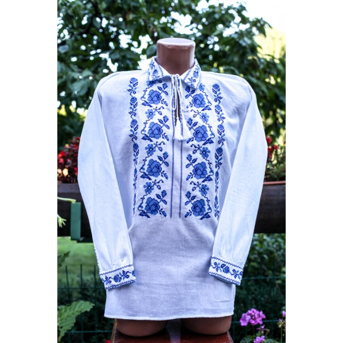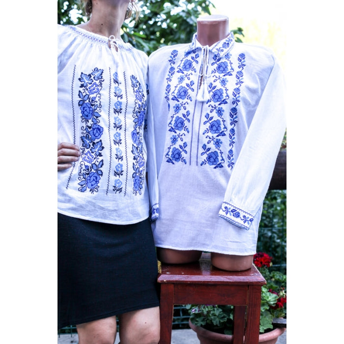 Camasa romaneasca pentru barbati cu model traditional brodat la masina. Set ie dama barbati, ii sot sotie.