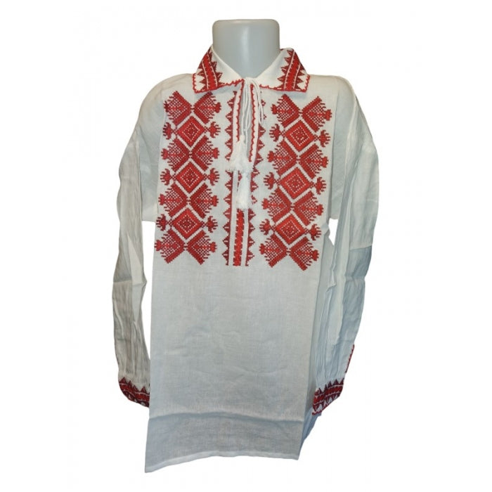 Motiv Florale: Ie tradițională decorată cu motive florale și geometrice, reprezentative pentru diferite regiuni ale României.