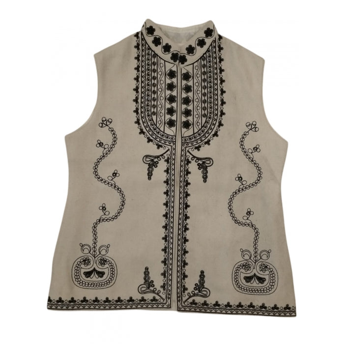 Materiale de Calitate: Realizată din materiale de cea mai înaltă calitate, această vestă se remarcă prin durabilitate și confort, Vesta bej cu motive traditionale pentru barbati cu model traditional brodat la masina,cu broderie bej. Material amestec stofa, lana. Captuseala din bumbac