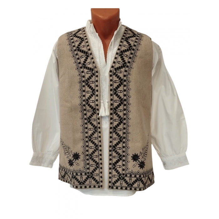 Vesta Traditionala pentru barbati cu model traditional brodat la masina. Material amestec stofa, lana. Captuseala din bumbac.