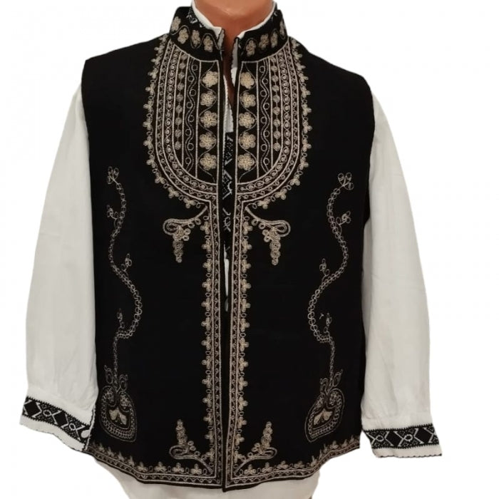 Vesta Traditionala pentru barbati cu model traditional brodat la masina. Material amestec stofa, lana. Captuseala din bumbac.