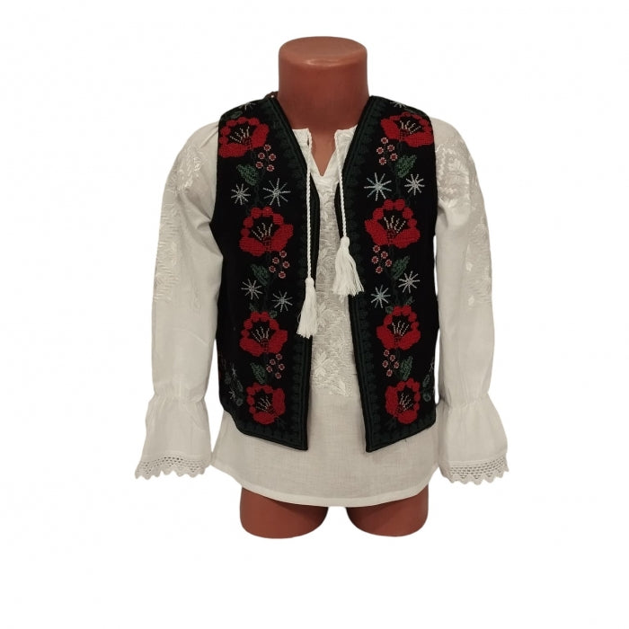 Vesta Traditionala pentru copii cu model traditional brodat la masina. Material amestec lana, captuseala din bumbac.
