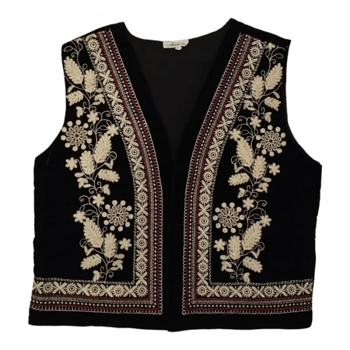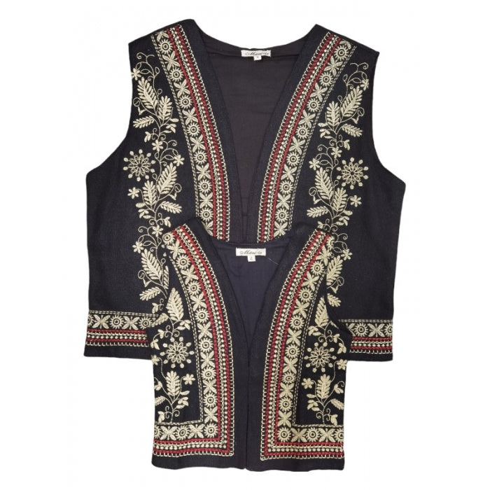 Material: lana 58%, poliester 25%, acrilic 8%, nylon 7%, vascoza 1%, bumbac 1%. Broderie cusuta la masina. Captuseala din bumbac.