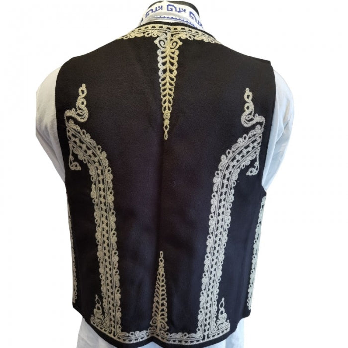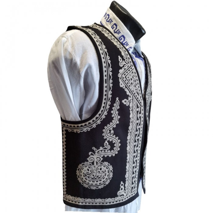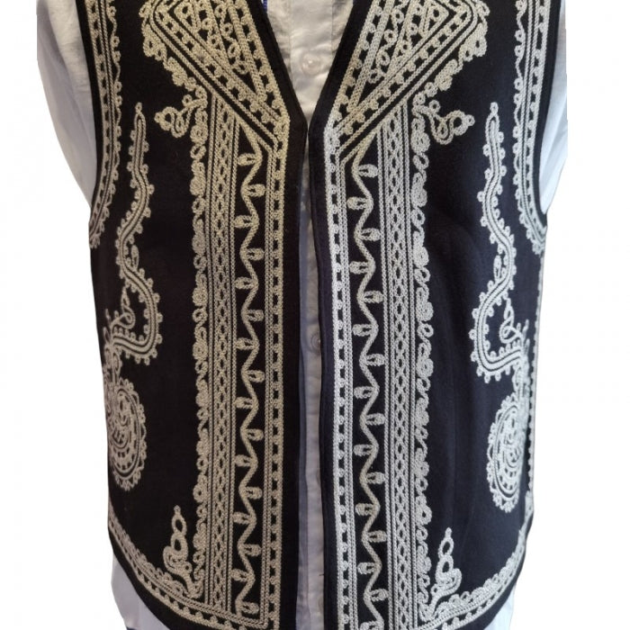 Material: stofa cu fire de lana in compozitie. Broderie cusuta la masina. Captuseala din bumbac.
