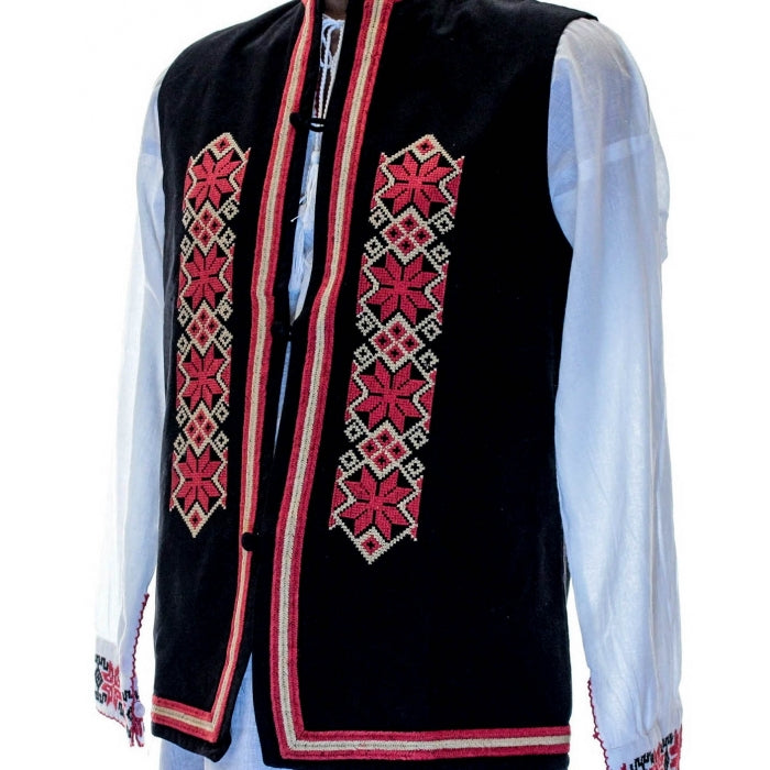 Vesta Traditionala pentru barbati cu model traditional brodat la masina. Material bumbac 100%. Captuseala din bumbac.