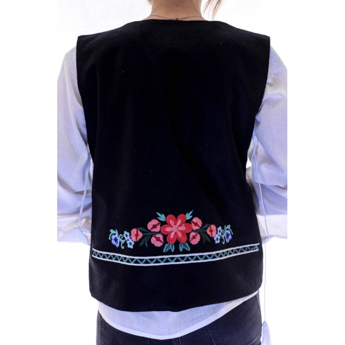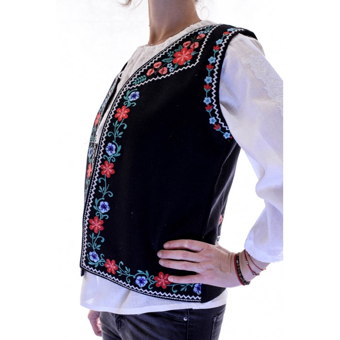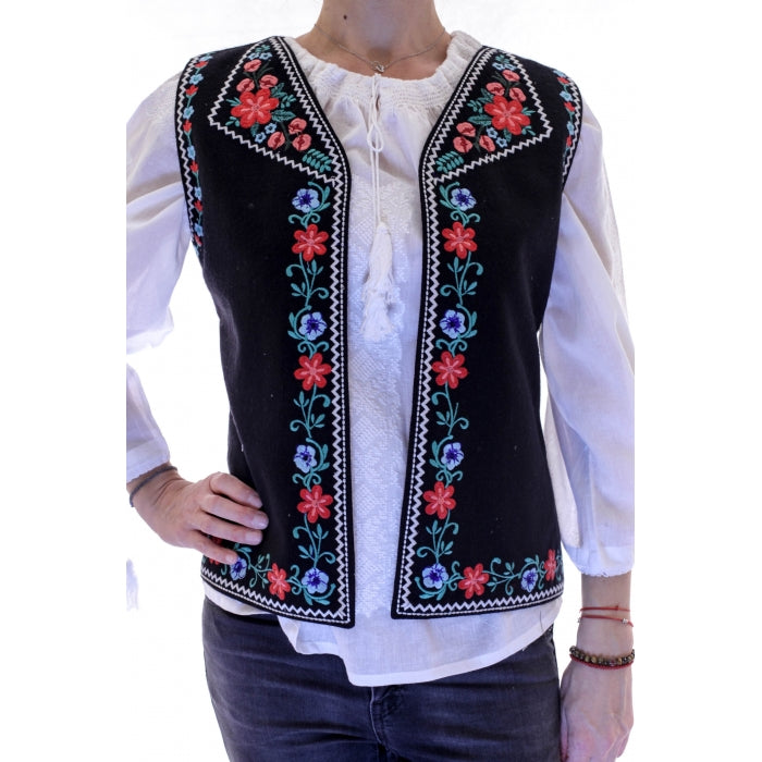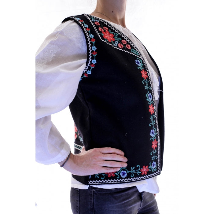 Material: lana 58%, poliester 25%, acrilic 8%, nylon 7%, vascoza 1%, bumbac 1%. Broderie cusuta la masina. Captuseala din bumbac.