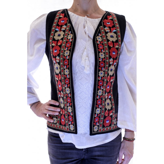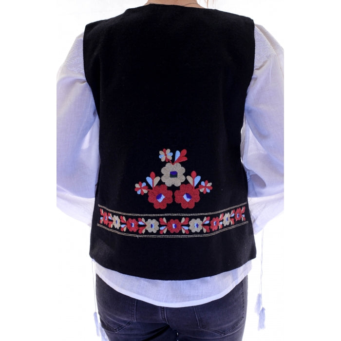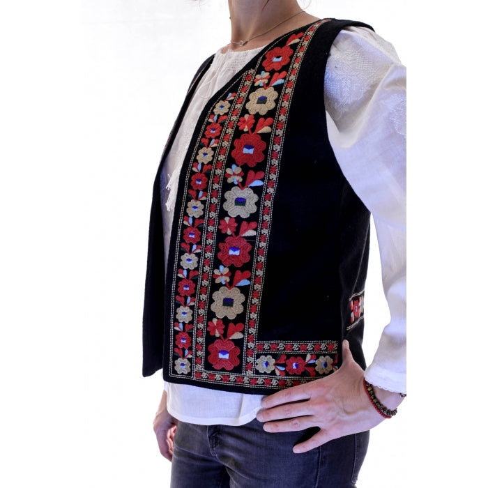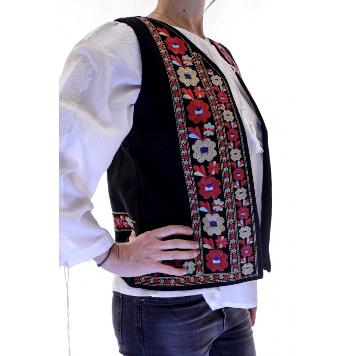 Material: stofa - lana 58%, poliester 25%, acrilic 8%, nylon 7%, vascoza 1%, bumbac 1%. Broderie cusuta la masina. Captuseala din bumbac.